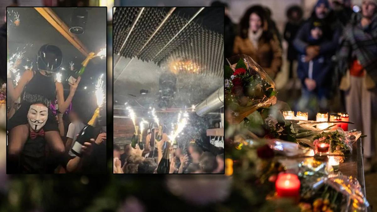 Víctoria, una joven que logró escapar de las llamas, indicó que el fuego se habría iniciado cuando una joven subió sobre los hombros de un camarero portando una botella de champán con bengalas, que habrían prendido el techo del local.