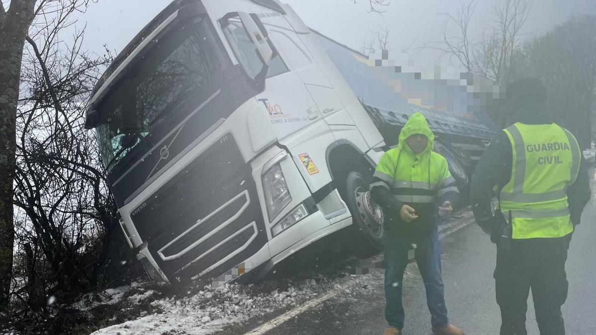 El accidente ha tenido lugar sobre las 10.00 horas y se ha saldado únicamente con daños materiales. Su conductor, un hombre de 56 años de nacionalidad portuguesa, ha resultado ileso, informan desde la Guardia Civil.