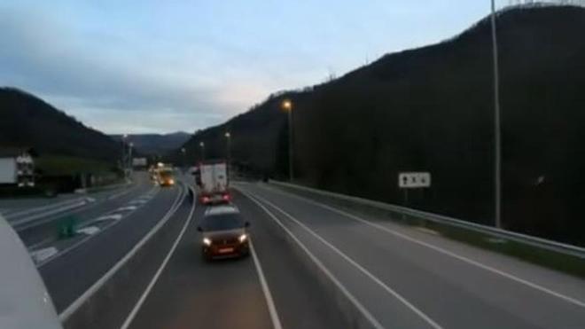 La maniobra de un camionero evitó la tragedia este miércoles por la tarde en la N-121-A, a la altura de Sunbilla. Una pareja de turistas circulaba en dirección contraria por un despiste hasta que se encontró de frente con el camionero, que iba en sentido Pamplona. Un primer camionero evitó el choque frontal y el segundo, que marchaba tras él, marcó la velocidad del resto de vehículos que circulaban por detrás. Todos pudieron frenar a tiempo y la furgoneta de los turistas comenzó a circular marcha atrás a una velocidad de unos 30 kilómetros por hora con todas las luces activadas hasta salir de la vía.
