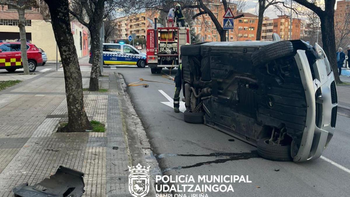 Pamplona registró el martes siete accidentes de tráfico atendidos por la Policía Municipal. Uno de los incidentes más llamativos tuvo lugar por la tarde en el barrio de Iturrama, poco antes de las 18:00 horas, donde un vehículo volcó tras chocar contra el bordillo de la acera y el tronco de un árbol en la calle Abejeras.