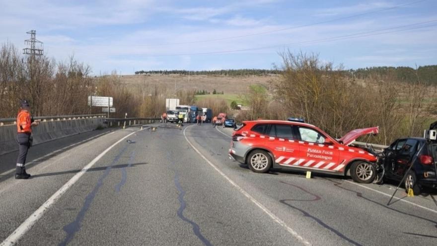 Cinco personas, entre ellas dos agentes de la Policía Foral, han resultado heridas de diversa consideración este martes tras una colisión múltiple en la carretera N-121 en Noáin (Valle de Elorz).