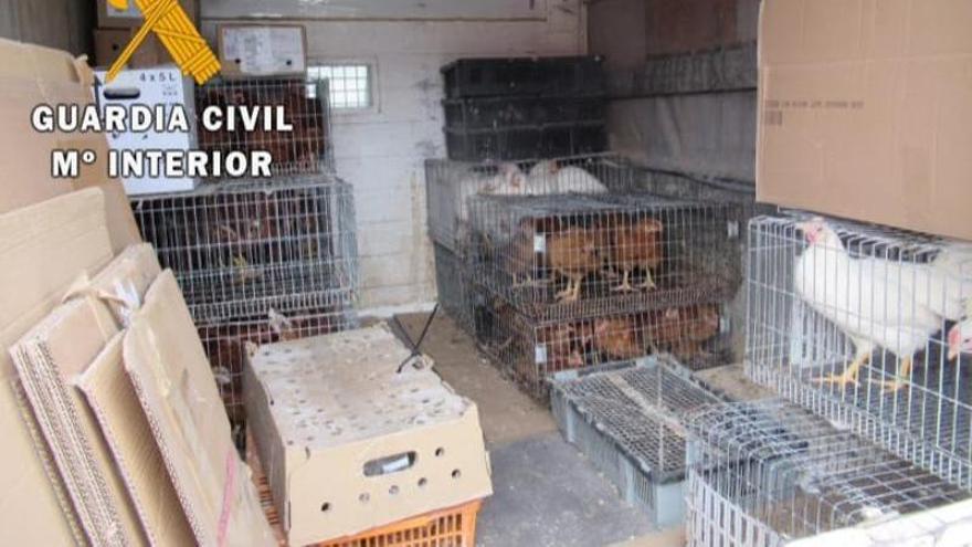 Agentes del Servicio de Protección de la Naturaleza (SEPRONA) establecieron un dispositivo de vigilancia y sorprendieron al propietario de una furgoneta tipo camión caja cuando estaba efectuando la venta de gallinas a otro varón.