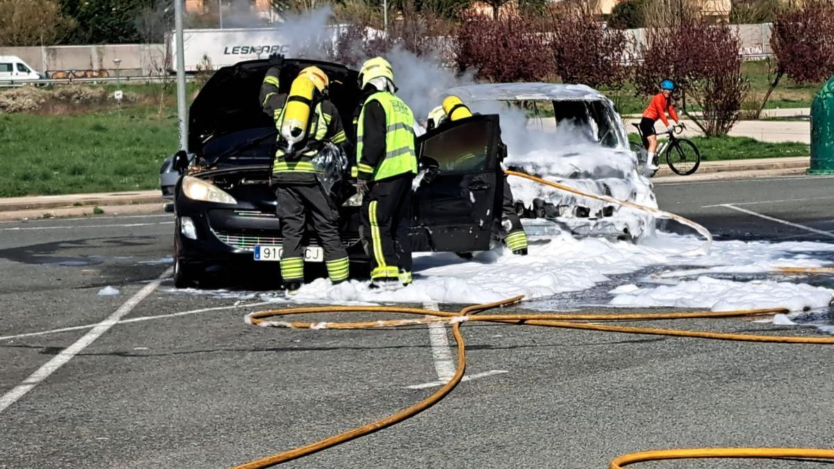 Efectivos de bomberos han intervenido este viernes para extinguir el incendio de un vehículo en el parking de la Ciudad Deportiva Artica, ubicada en la localidad del mismo nombre.