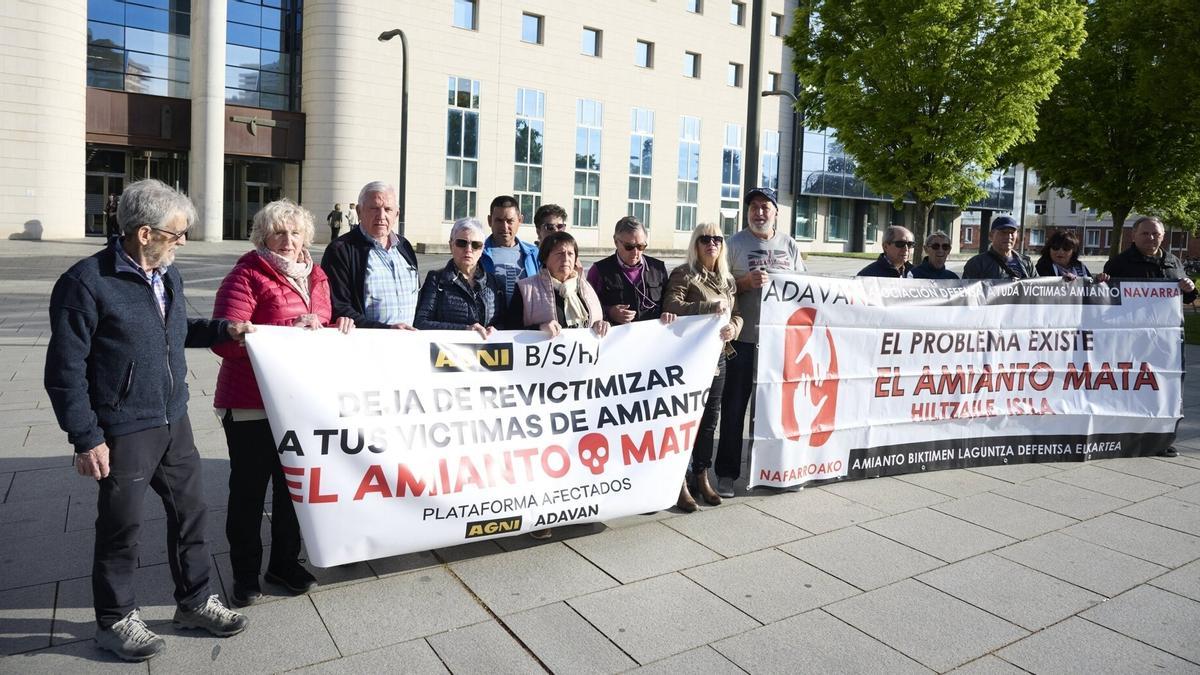 La Asociación de Defensa y Ayuda a las Víctimas de Amianto de Navarra (ADAVAN) se concentraron ayer frente al Palacio de Justicia de Pamplona en apoyo a un trabajador, M.S.R., y su familia. El acto coincidió con la celebración de un juicio por daños contra la empresa Agni/BSH, mercantil para la que el afectado trabajó entre 1967 y 1988 realizando el montaje de paneles de catalíticas.