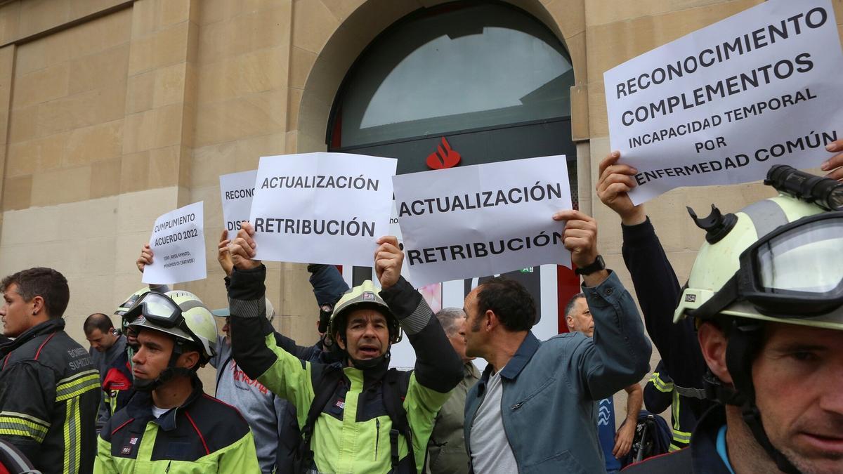 Los bomberos de Navarra han exigido este martes al Gobierno foral que se inicie una negociación "real" sobre sus condiciones de trabajo, en una concentración ante el Palacio de Navarra.