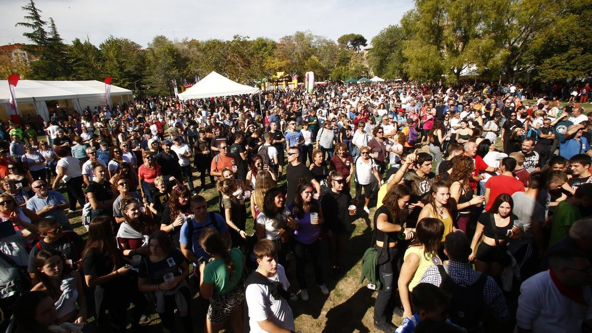 A mitad del camino entre el área 3, Zuhaitz, y la 2, Hazi, un grupo de jóvenes vestidos con la misma camiseta atraían la atención de muchas familias. Con unos altavoces, un micrófono y una pancarta con la frase “Azterketak Euskaraz” (“Exámenes en euskera), fueron saliendo uno a uno a rapear sus propias letras reivindicativas. Eran los alumnos y alumnas del Lizeo Etxepare de Baiona pidiendo una selectividad en su lengua. “Estudiamos todos los cursos en euskera pero llegamos a selectividad y no podemos hacer el examen en nuestra lengua. No tienen sentido”, argumentaba una joven del grupo. Acompañados por sus profesores, el grupo llegó a Tafalla el sábado para poder disfrutar de la fiesta durante todo el fin de semana.