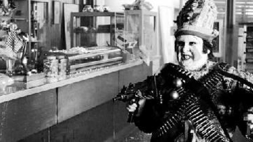 En el horror se esconde algo fascinante y siniestro: el enigma de la muerte. Y hacia allí se encamina este filme que se ríe en los créditos de apertura de las servidumbres económicas de un cine subvencionado para levantar el telón en medio de una secuencia que corta el aliento. Una secuencia presidida por Santiago Segura en una impagable interpretación que se apaga posteriormente, transmutado en un payaso tonto, ebrio de pena y sangre. Balada triste hace honor a su nombre. Todo en ella resulta acongojante, doloroso e inconcebible. De la Iglesia se sirve del duelo de dos payasos, el triste y el tonto, que se muelen a golpes por una trapecista de la que el espectador no sabrá jamás como definirla porque en realidad como personaje jamás se forma.