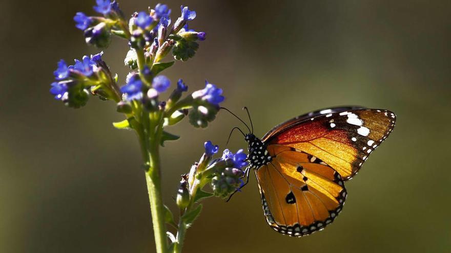Una mariposa se posa sobre una flor en un valle del Parque Nacional de Table Mountain en Ciudad del Cabo (Sudáfrica). Este parque nacional ha sido reconocido como una de la áreas con mayor boidiversidad existente en casi todo el área metropolitana.