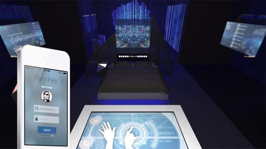 Además, la habitación tiene paneles acústicos de Philips y pantallas holográficas y el baño incluye un espejo antivaho y una bañera tipo spa. Por otra parte, B-Interactive ha presentado pantallas lightbox transparentes que permitirán el registro de visitantes para evitar colas en las entradas y salidas del hotel.