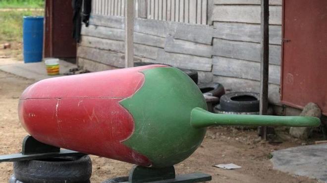 Accra (Ghana). Ataúdes con forma de camión, de teléfono móvil o de cangrejo se exhiben en una tienda especializada en trabajos de madera, en Accra (Ghana). Estos ataúdes fantasía son creados para honrar al difunto y son considerados una obra de arte con un valor de 300 a 700 dólares.